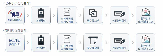 온크레딧 웹사이트나 캠코(전국 12개 지역본부·☎1588-3570) 현장 방문을 통해 신청할 수 있다. 추가적인 온크레딧 웹사이트는 아래에서 확인하세요.