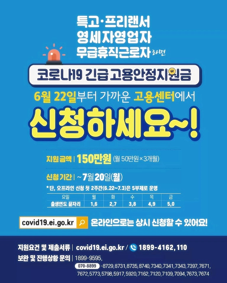 긴급 고용안정지원금 오프라인 신청은 7월 다음달 3일까지 계속됩니다.