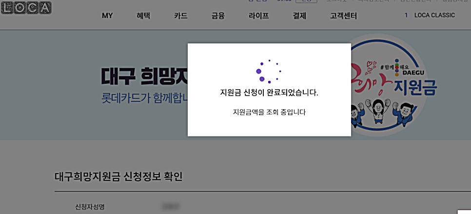 혜택 ☞ 정부지원혜택 ☞ 대구희망지원금