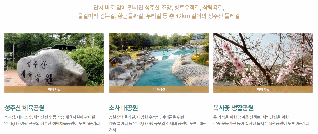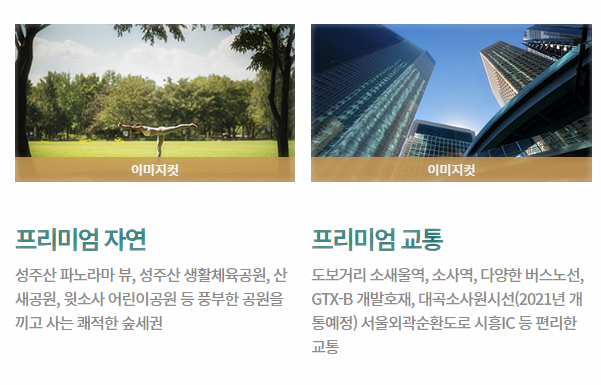 성주산 숲세권과 소새울역 역세권의 더블세권 아파트로서도 높은 평가를 받을 것으로 보인다. 전세대 조망권을 확보했을 뿐 아니라 남쪽으로는 성주산의 파노라마 뷰, 동쪽으로는 시티뷰가 시원하게 펼쳐지며 총 42km 성주산 둘레길, 성주산체육공원 등의 3만평 근린공원도 인근에 위치한다.