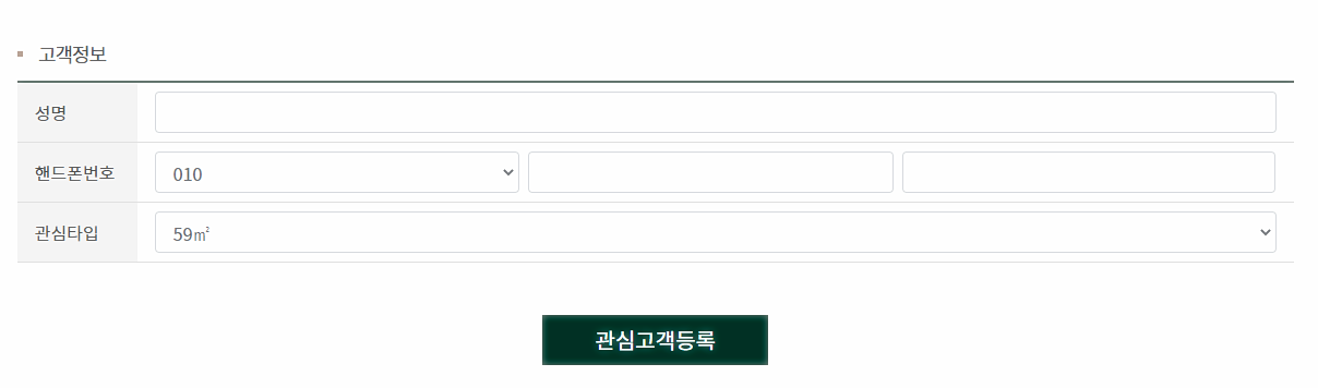 단지 정보를 받아보시려면 아래 공식 홈페이지에서 관심고객등록 해보세요. 또는 직방에서 해당 단지를 추가하고 푸시알람을 받아보실 수도 있습니다.