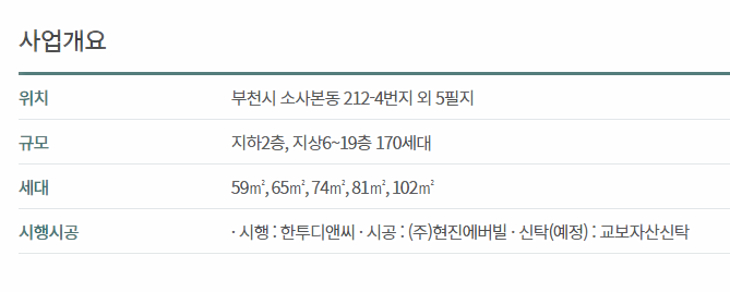 부천시 소사본동 212-4번지 외 5필지에 59㎡, 65㎡, 74㎡, 81㎡, 102㎡ 총 170세대