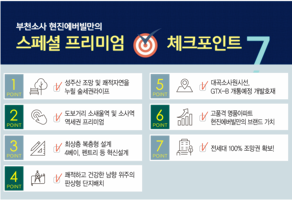 7월에 선보일 예정인 부천 소사 현진에버빌은 도보생활권에서 모든 것이 해결되는 특급 위치로 큰 각광을 받을 것으로 기대된다.
