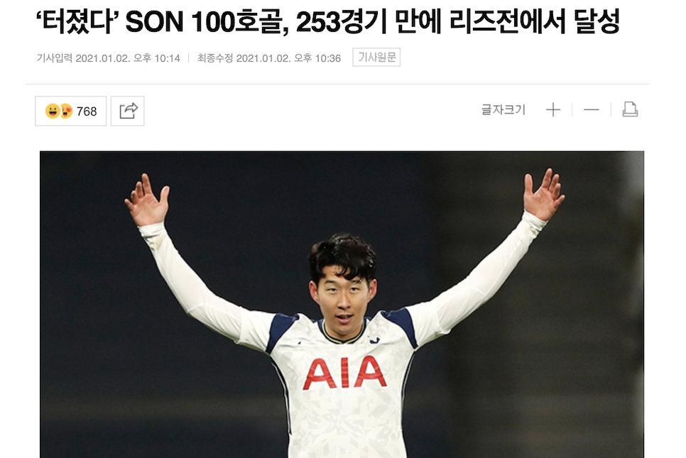 손흥민 100호골 소식을 전해보았다. 진짜로 새해 1월2일부터 축포를 쏴줘서 올해 2021년은 뭔가 더 잘 풀렸으면 하는 바람입니다. 이렇게 경기로 좋은 뉴스 전해주시는 쏜샤인이 있어 너무 기쁘다. 토트넘 리즈 골은 세골이 나와서 경기 결과는 대만족! 화이팅~~