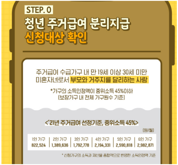 청년 주거급여 분리지급 조건 신청