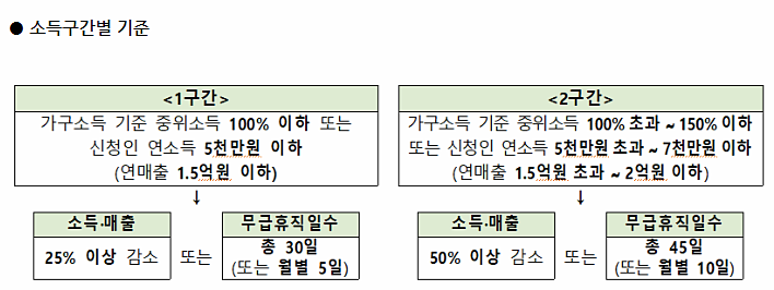 또 2020년 3~5월 중 일정 기간 이상 무급 휴직하는 경우도 소득 감소 요건에 해당한다.