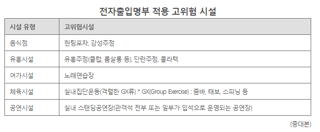 qr코드 전자출입명부 출입 앱 도입 고위험시설8종.